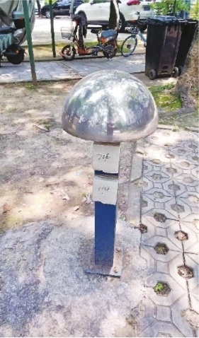 在温馨苑小区,新安装的“蘑菇”充电桩。记者李爱华 摄