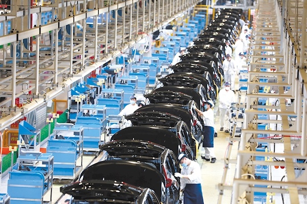 东风本田第三工厂,工人在总装车间有条不紊操作。 (湖北日报全媒记者 柯皓 摄)