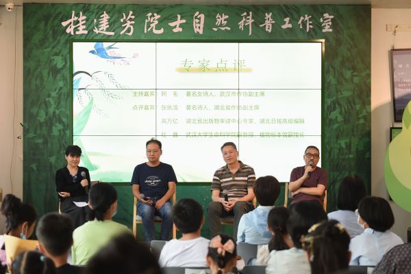 今年8岁半的蔡元亨现场提出写诗的困惑:“为什么我每次写诗的时候,总是一不小心就把篇幅写得过长?”武汉大学生命科学院副教授、植物标本馆副馆长杜巍以常年植物调查的实践经历建议小诗人跟着大自然学写诗,“表达欲强并不是一件坏事,不过要让诗歌具有生命力,还是要多去触摸大自然,真听真闻真感受,让文字‘走动’起来。”