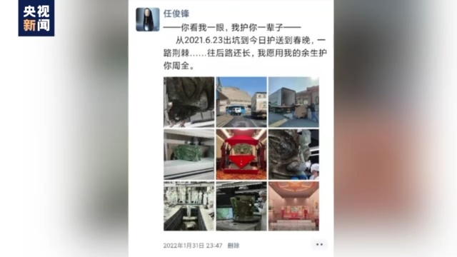 而修复师任俊锋在2022年的春节前夕,在社交软件上写下了一段话:你看我一眼,我护你一辈子。从2021年6月23日出坑到今日护送到春晚,一路荆棘……往后路还长,我愿用我的余生护你周全。