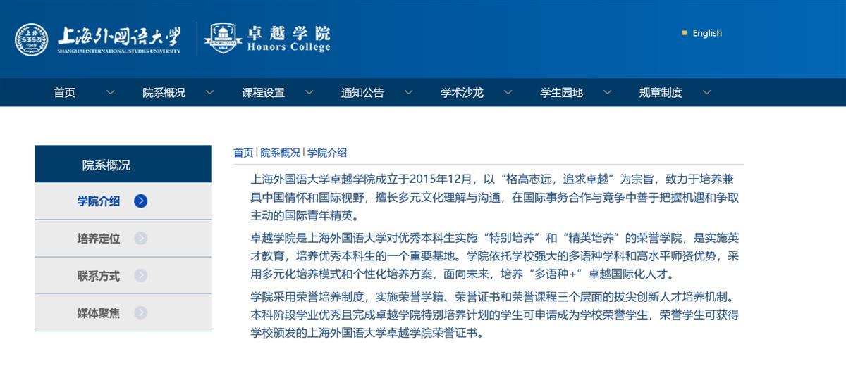 上海外国语大学卓越学院介绍(来源学校官网)