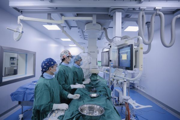 呼吸与危重症医学科血管介入团队为刘女士进行经皮肺动脉取栓术。通讯员罗瑶 摄