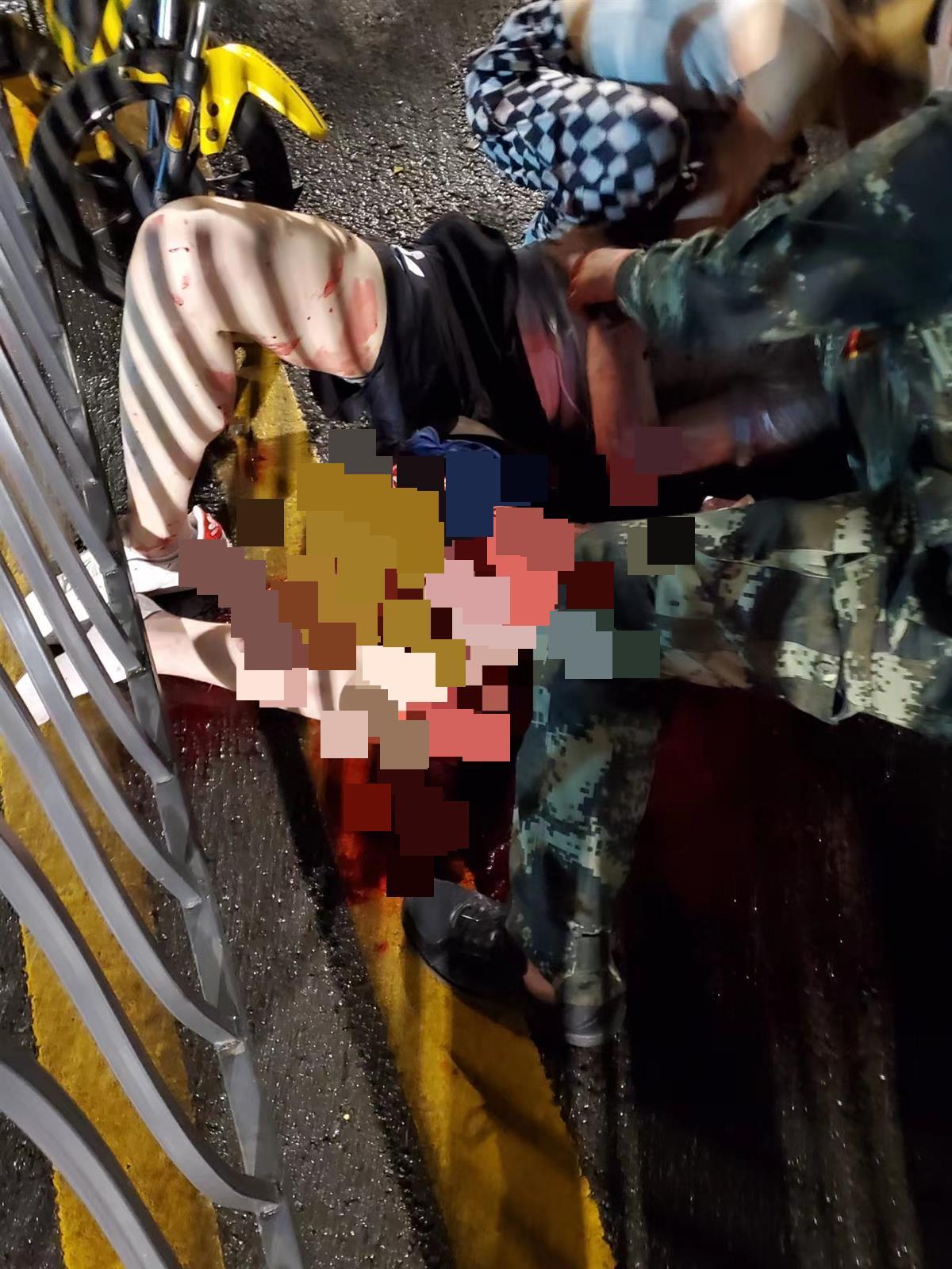 看到倒在血泊中不断呻吟呼救的伤者,路过现场的武汉大学人民医院(武汉大学第一临床学院)医学研究生吴志丰、张烨、熊威、朱子敬4人立即上前施救有效止血后火速送医,成功挽回一条生命。