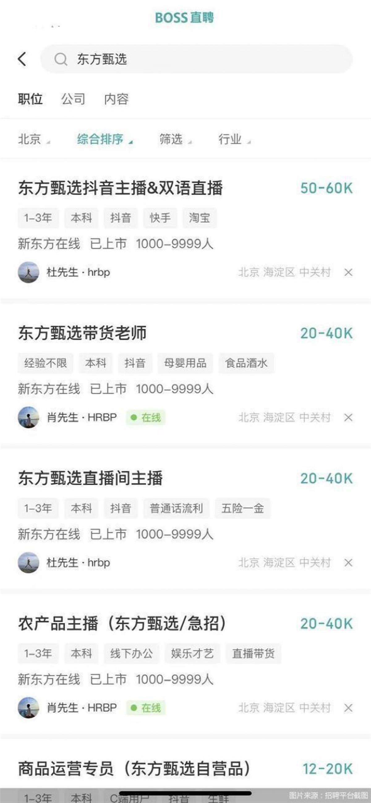 新东方月薪5万招主播