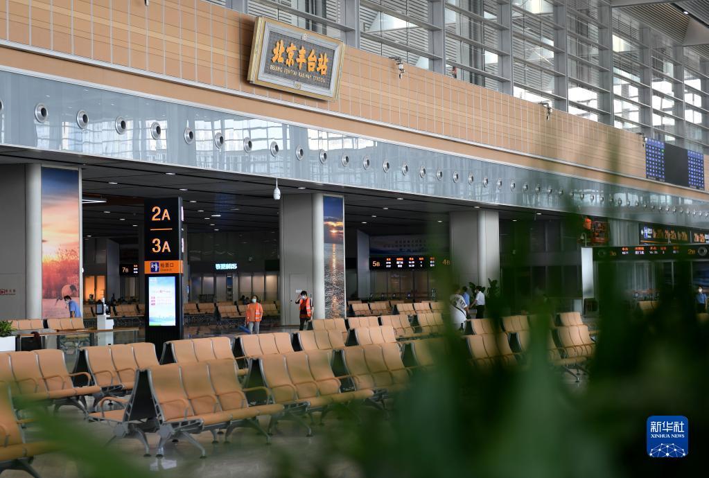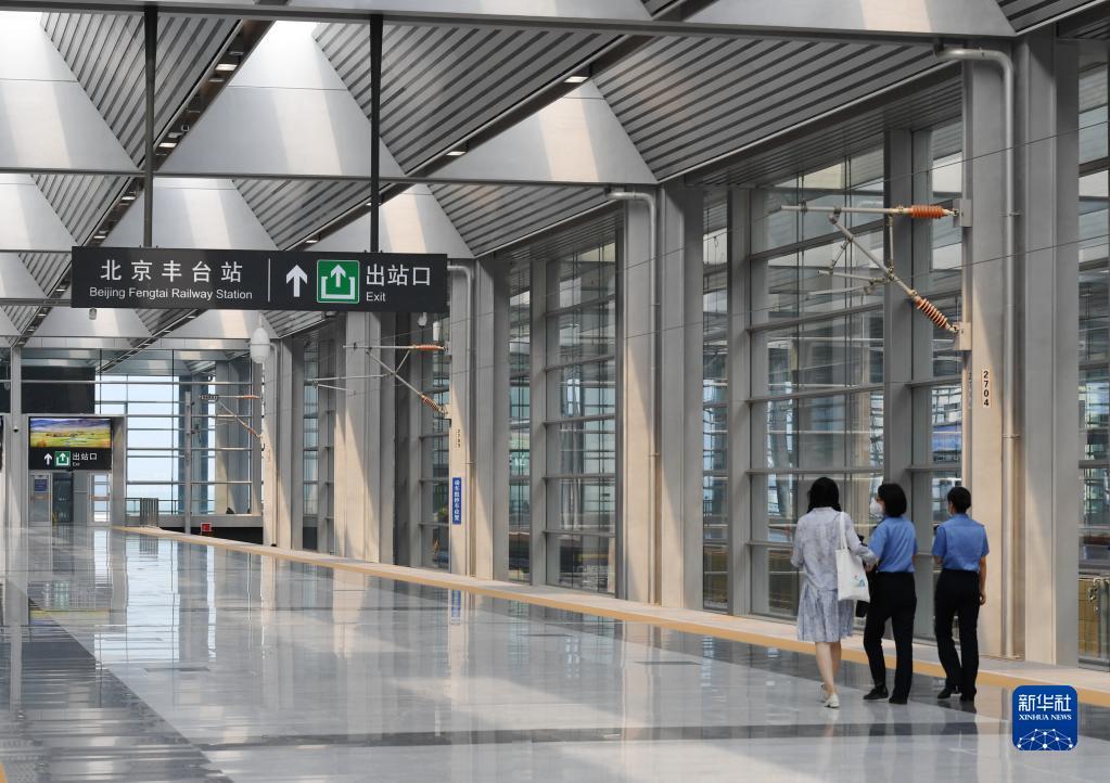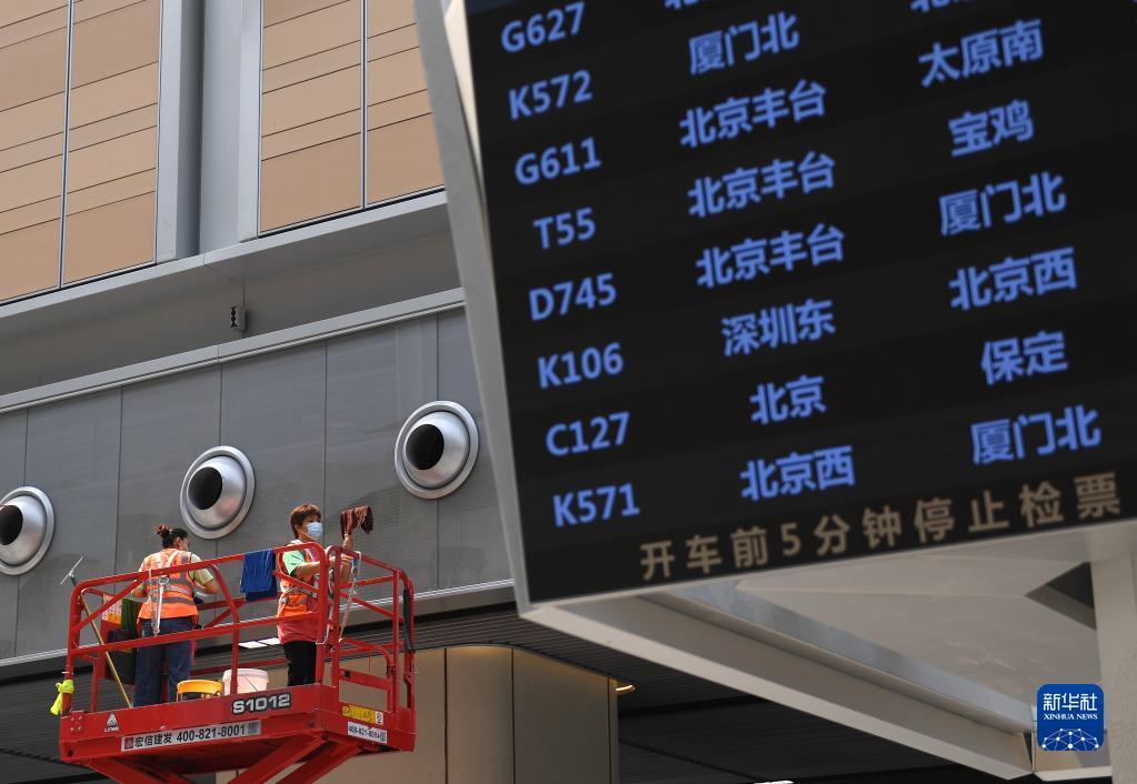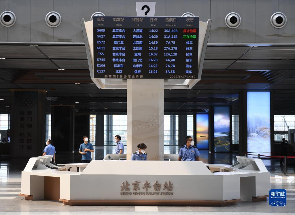6月17日,北京丰台站的工作人员在做运营前准备。