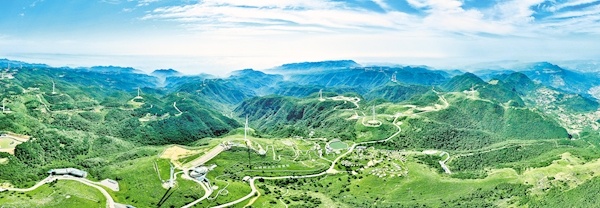 宜昌市夷陵区、远安县、当阳市三县(市、区)交汇处的百里荒地区云雾缭绕,风力发电机在山顶徐徐转动,山顶景色迷人。宜昌环百里荒乡村振兴试验区是宜昌市十四五规划中创建“1+4+N”的乡村振兴示范格局的标杆,其总面积769平方公里,涵盖夷陵区、远安县、当阳市3地6镇42村9.18万人。