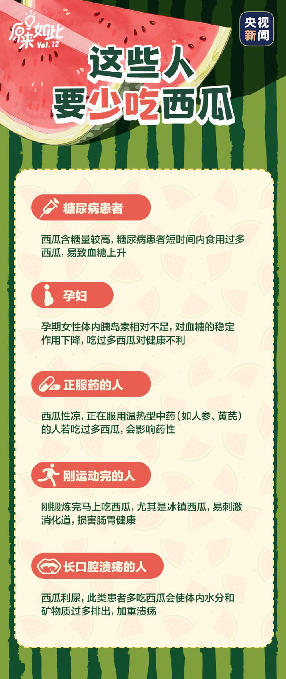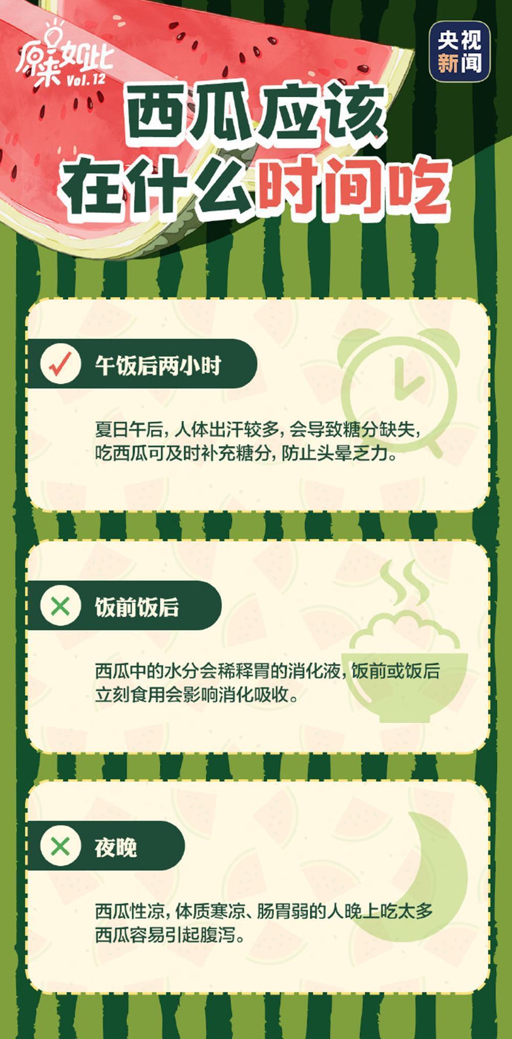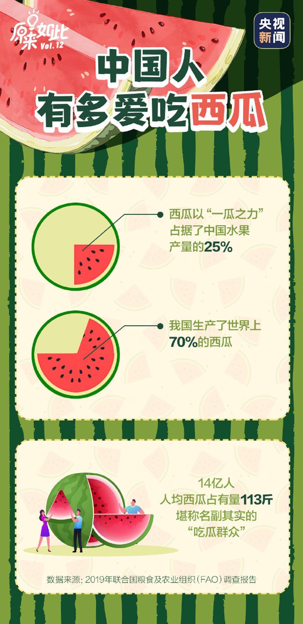 你知道吗?世界上七成西瓜产自中国,中国人均西瓜占有量达113斤。炎炎夏日,怎样挑瓜?买西瓜的时候为什么要敲一下?西瓜热量真的很高吗?隔夜的西瓜能不能吃?一起来了解↓↓