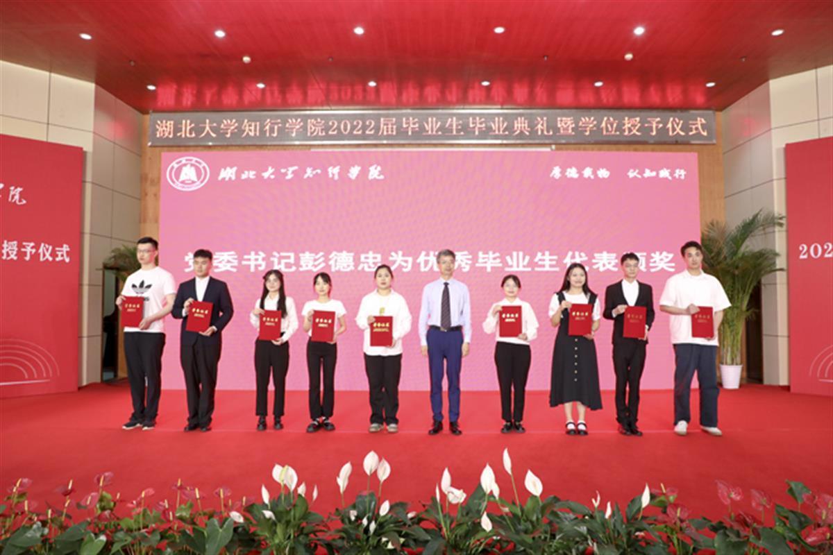今年,湖北大学知行学院采取“云毕业”形式,线上、线下相结合的方式举行毕业典礼,学校3236名毕业生满载希望开启人生新航程。党委书记彭德忠为2022届优秀毕业生代表颁发证书。肖俊飞等324名同学荣获“优秀毕业生”荣誉称号,他们勤奋好学、勇于担当,展现了知行学子的良好精神风貌和崇高品德。