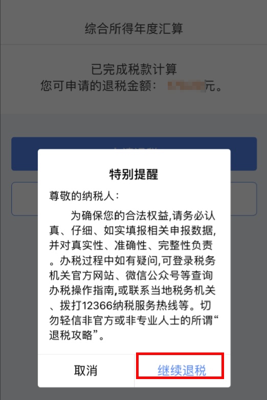 广大纳税人应依法依规办理个人所得税汇算清缴,认真阅读个税APP提示提醒信息,如实准确填报收入、专项附加扣除等申报项目,需申报补税的要在法定期限内完成申报补税,不要轻信网上各类“退税秘笈”,更不要在网络社交平台随意传播非官方涉税信息,做依法诚实守信的纳税人。