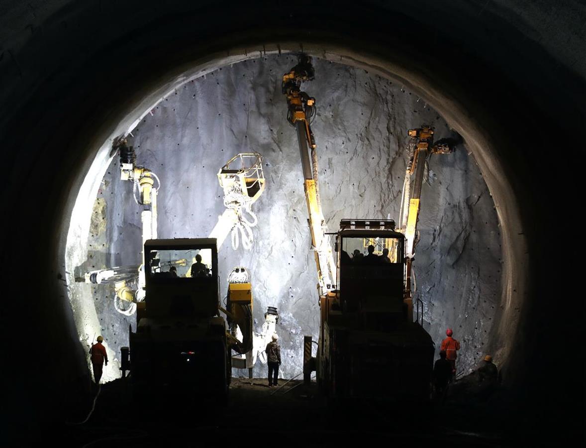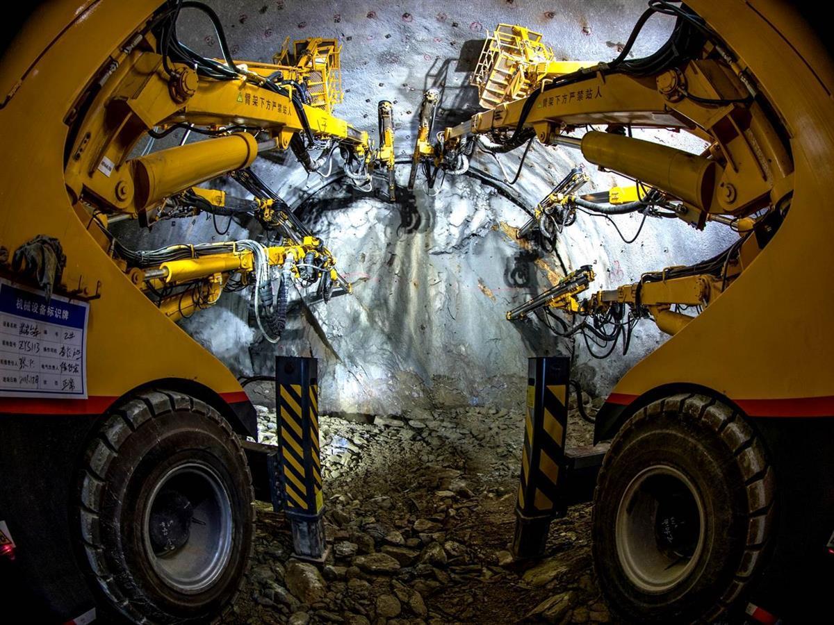 以往,修建隧道掌子面钻孔、填充炸药等全靠人工,耗时长,作业风险大。高家坪隧道采用的智能三臂凿岩台车可以实现30秒自动钻孔,比人工钻孔更省时;以往是人工填充炸药,高家坪隧道采用国内最先进的智能装药设备替代,填充炸药更精准,并采用泵注方式将炸药压进炮孔内。以往五六十人施工的掌子面,仅需10个人就能完成,机械化、智能化施工不仅保证了施工安全,减少了施工人员,还大大提高了工作效率。