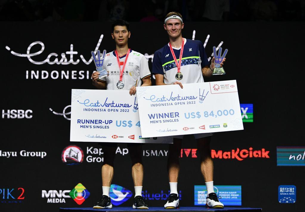 当日,在雅加达举行的2022年印度尼西亚羽毛球公开赛男单决赛中,丹麦选手安赛龙以2比0战胜中国选手赵俊鹏,夺得冠军。
