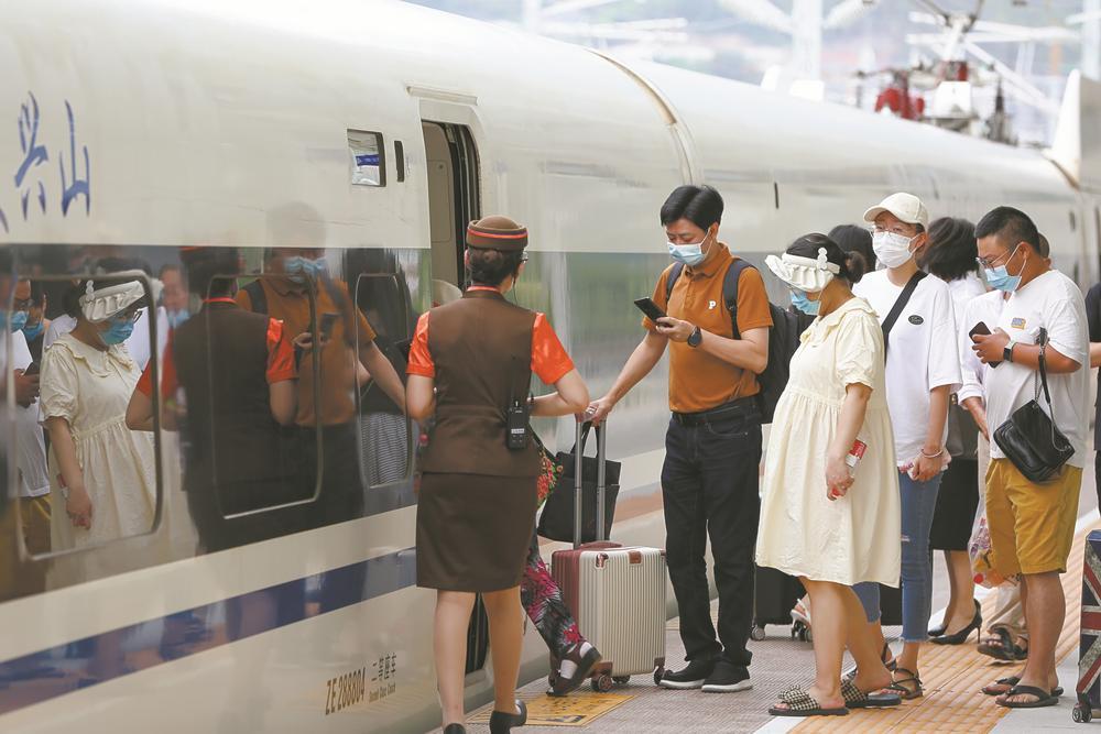 6月20日,乘客在郑渝高铁兴山站有序乘车 全媒体记者杨东 通讯员李涛 陈先瑞摄