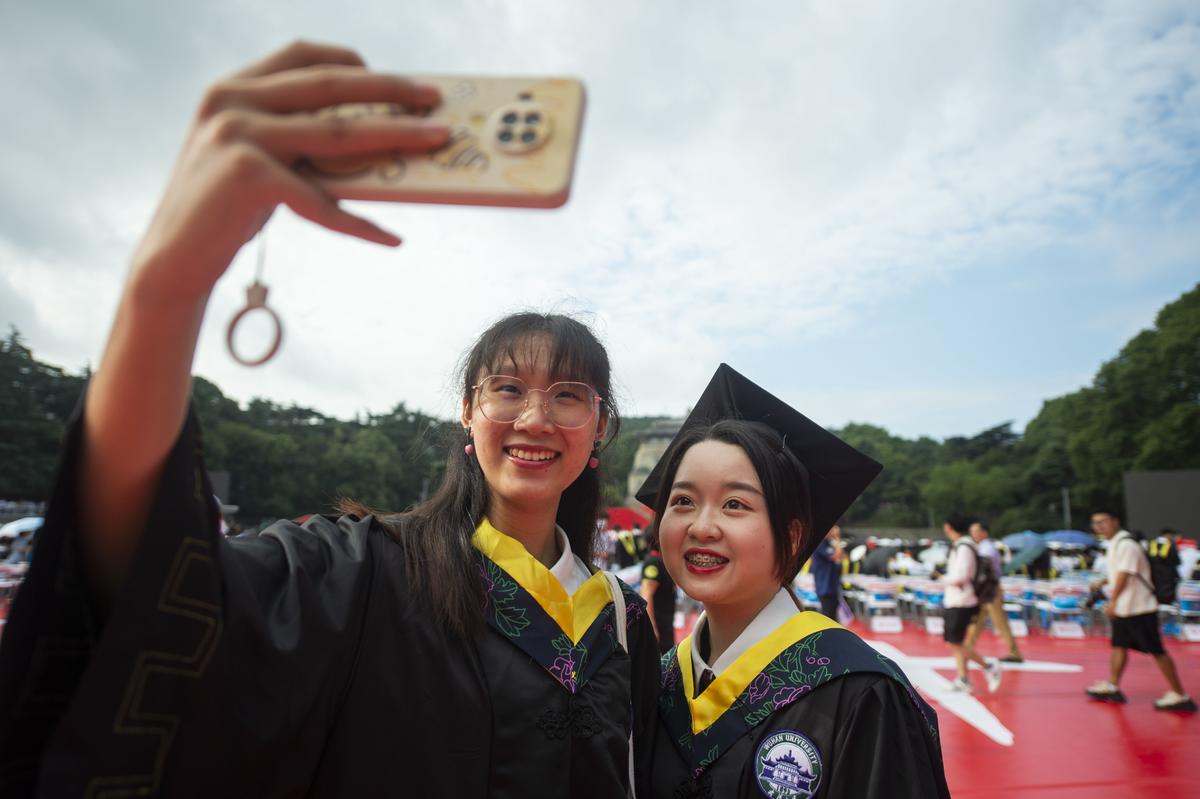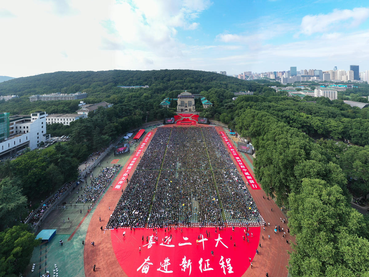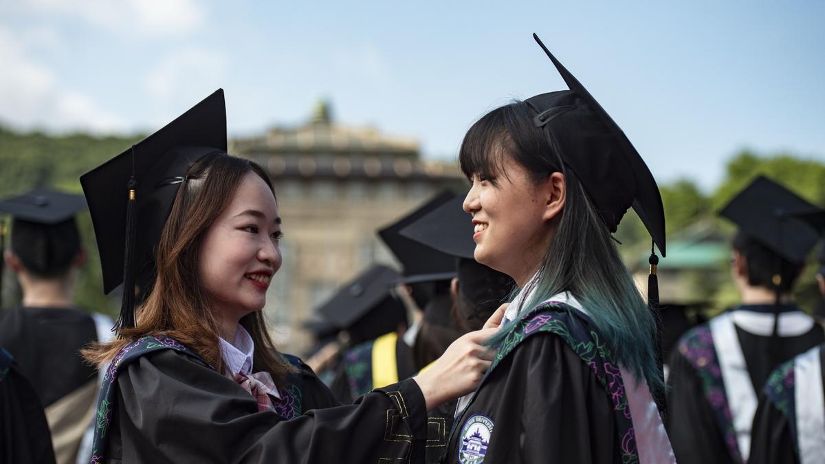 武汉大学2022年毕业典礼在九一二操场举行,全校超万名师生共同参与。