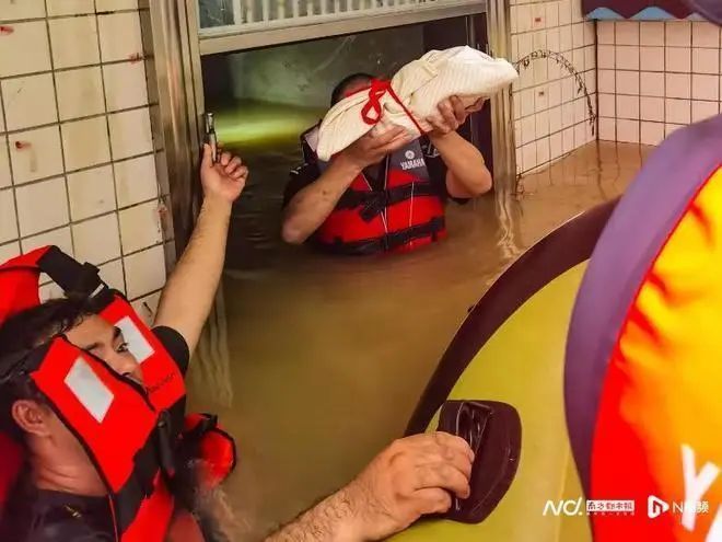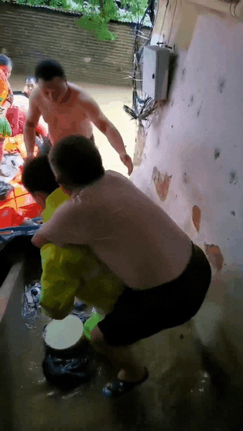 民警迅速带齐救援救生装备,前往现场进行救援。受铁门阻挠,橡皮艇无法进入出租屋小院,民警当即跳进浑浊的黄泥水中,打开铁门后破开防盗门,成功将等待救援的母子4人安全送上橡皮艇。