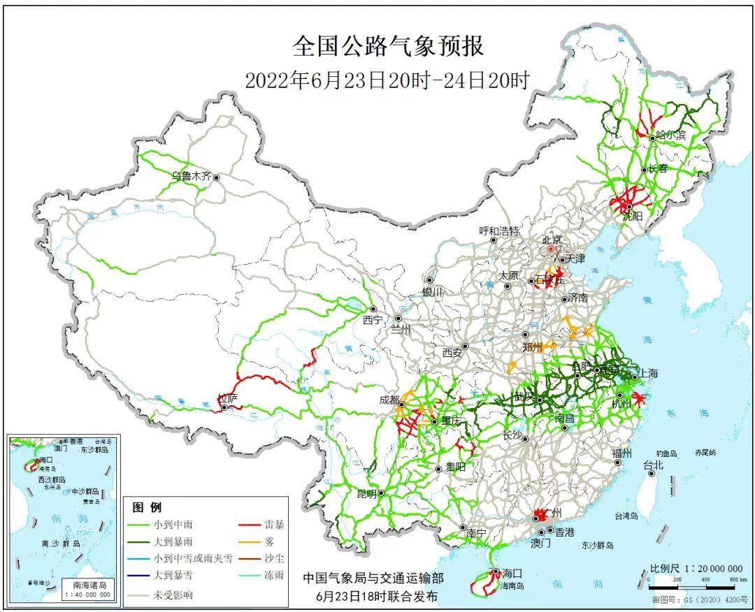 记者从交通运输部路网中心了解到,6月23日20时到6月24日20时,受雾影响的主要路段有: