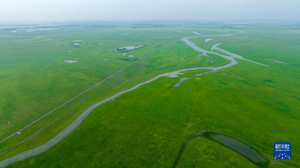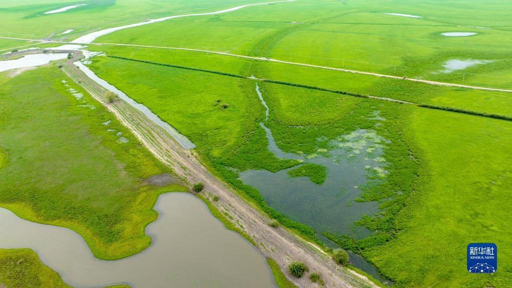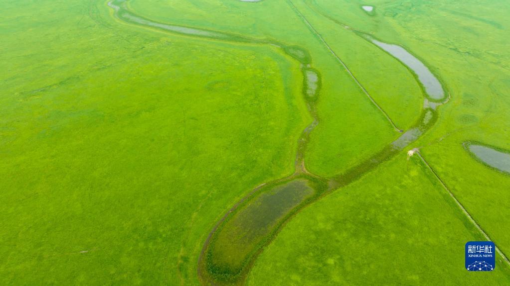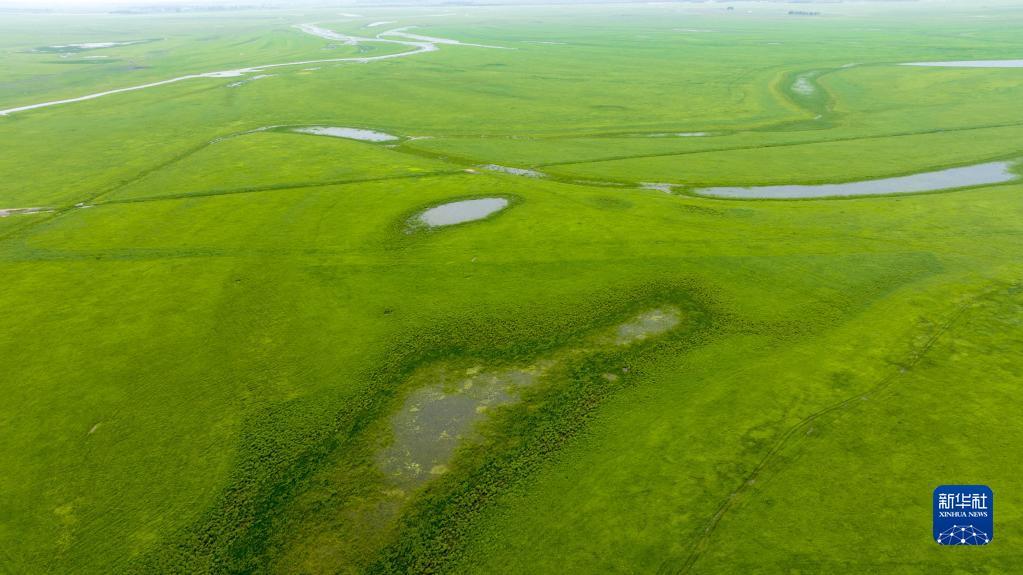 6月20日拍摄的镇赉县嫩江湿地(无人机拍摄)。