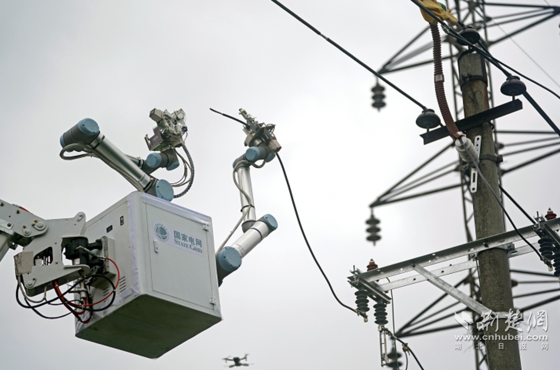 荆楚网(湖北日报网)讯(通讯员 宋安琪 孙双学)6月24日,在武汉青山区建设五路10千伏阳光线13号杆处,带电作业车绝缘斗臂车上,带电机器人准确模拟带电作业检修工的双手,实现引线与主线的识别定位、牢固抓握,运用精确的激光切割技术剥离导线绝缘层,将引线与主线快速准确地放入线夹,而后紧固线夹完成分支引线搭接工作。