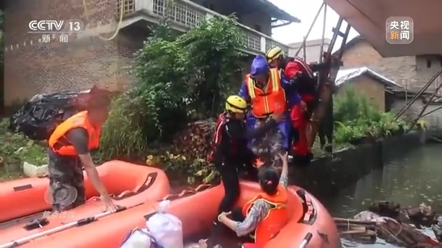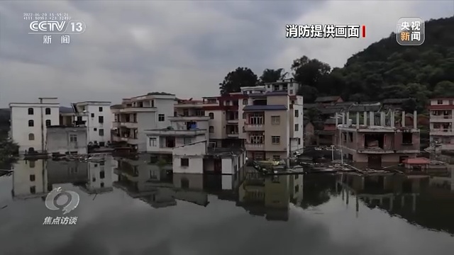 6月20日,受持续降雨和上游来水影响,广东肇庆封开县各流域水位持续上涨,流经封开县平凤镇的蟠龙河发生超警洪水。洪水倒灌进蟠龙村,积水普遍超过2米,多栋民房一楼被淹,大量群众被困楼上等待救援,其中有多位老人和儿童。消防救援人员立即调集7艘橡皮艇进村救援。由于被困群众较多,救援人员兵分多路,挨家挨户进行排查。由于一楼通道彻底被淹,消防人员找来梯子,帮助被困楼上的群众穿上救生衣,小心转移。
