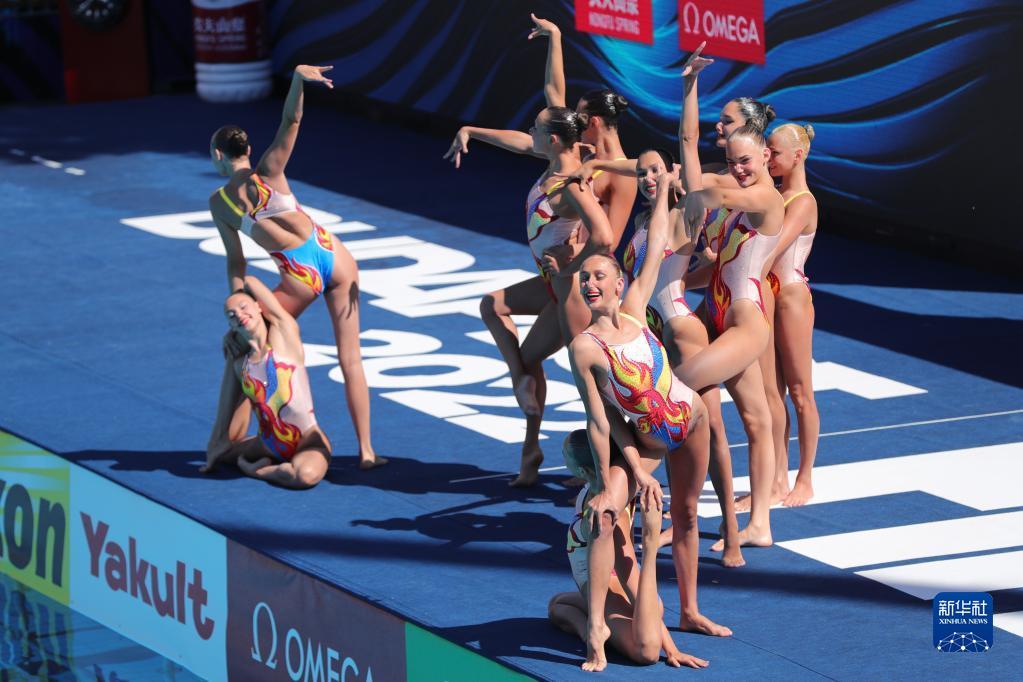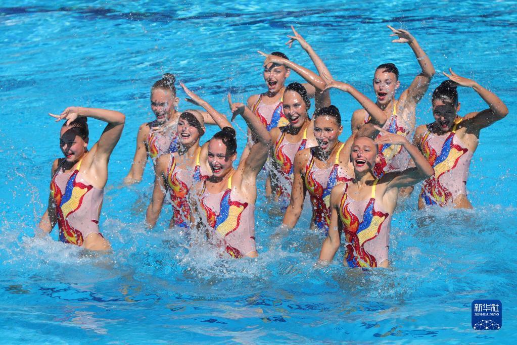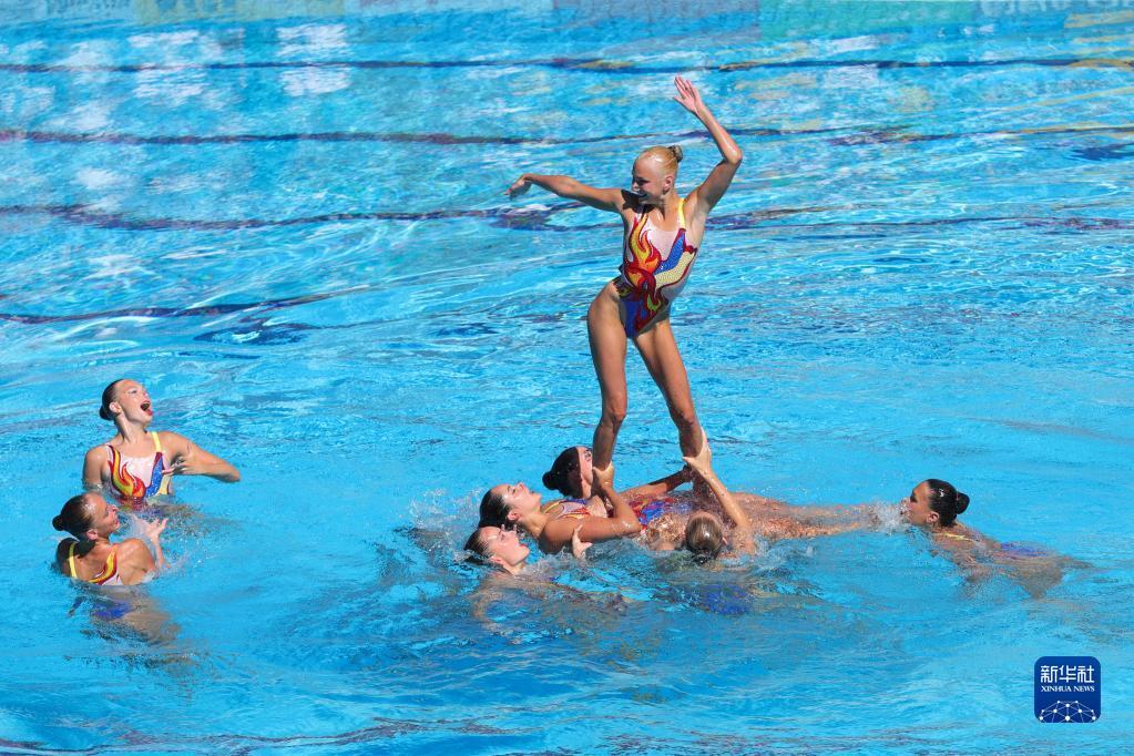 当日,在匈牙利首都布达佩斯举行的2022年世界游泳锦标赛花样游泳集体托举决赛中,乌克兰队获得金牌。