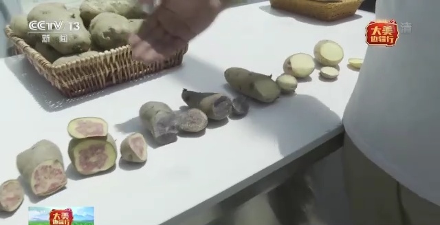 总台记者 阮超:科研的持续投入给土豆的产量和品质都带来了提升,以我手中的中加7号为例,它的亩产是在4吨以上,较市场上老的品种,亩产能多收500多斤,目前市场上的价格是1300元一吨,每亩增产可以达到一千元左右。
