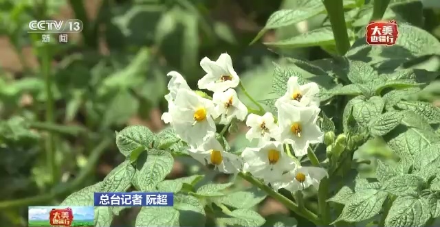 总台记者 阮超:我现在是在四子王旗的一个实验温室当中,在这个实验温室里正在进行不同土豆品种的研发工作。大家在日常生活中经常会食用到土豆,但是您见过土豆花吗?在我们这个实验温室里,有些土豆已经开花了,有的是白色的,有的是紫色的。