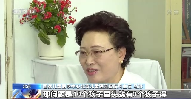 国家儿童医学中心北京儿童医院皮肤科主任 马琳:它累及的人数众多,多到什么程度呢?我们已经做了明确的研究,他在1岁的时候是30.48%,10个孩子里头就有三个孩子得,这是第一个,最高发的年龄是两岁之内。这个病的最大特点是痒。