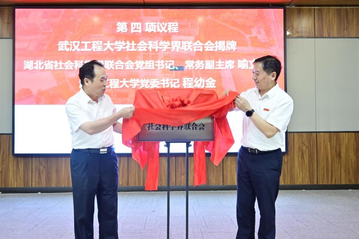 湖北省社科联党组成员、副主席王其涛代表省社科联宣读了《关于同意武汉工程大学社科联成为省社科联团体会员的批复》。湖北省社科联党组书记、常务副主席喻立平与武汉工程大学党委书记程幼金共同为“武汉工程大学社会科学界联合会”揭牌。