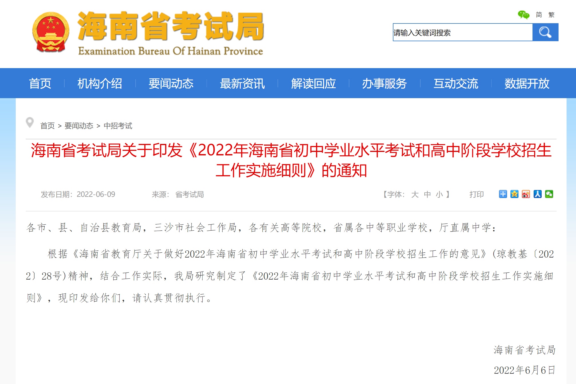6月27日,是海南省2022年初中学业水平考试(以下简称“中考”)的最后一天。据省考试局印发的《2022年海南省初中学业水平考试和高中阶段学校招生工作实施细则》,2022年高中阶段学校招生志愿设提前批、第一批、第二批和第三批共四个批次,网上志愿填报工作将于6月28日启动。