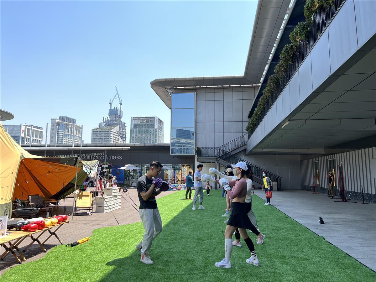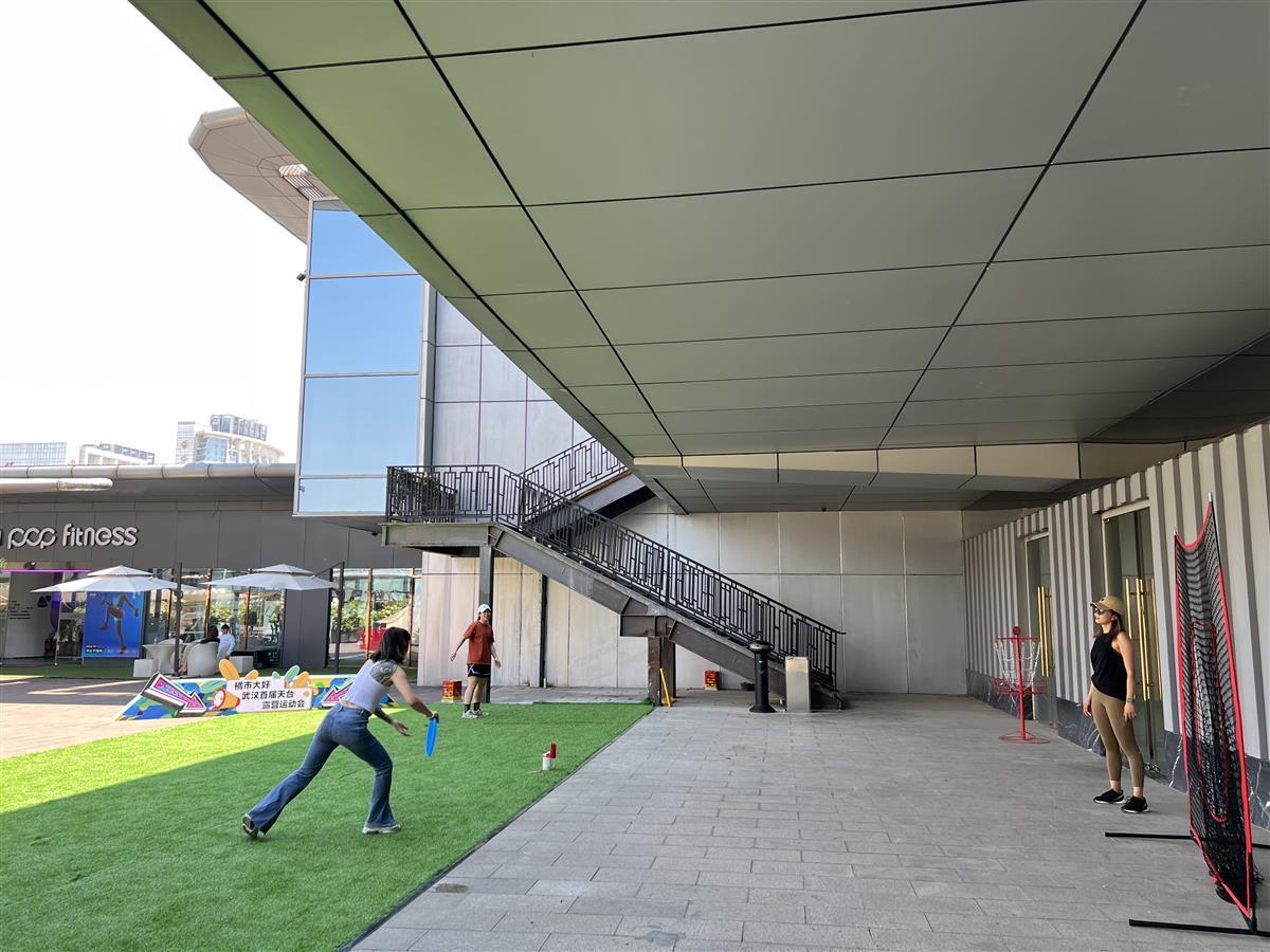 飞盘、Zumba、击剑、滑板,还有轻食、咖啡、精酿,商场游也可以很动感。今年五一小长假前后,武汉国际广场在9楼天台处举办“橘”市大好武汉首届天台露营运动会,潮男潮女云集。