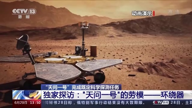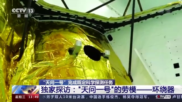 总台央视记者 李宁:这个地方空着的就是装定向天线的,就是那口大锅。所有的通信,环绕器和地球的通信都是通过它来实现的。在环绕器和着陆器分离之后,环绕器会充当一颗中继卫星的作用,火星车的通信都是通过它来跟地球建立联系的。