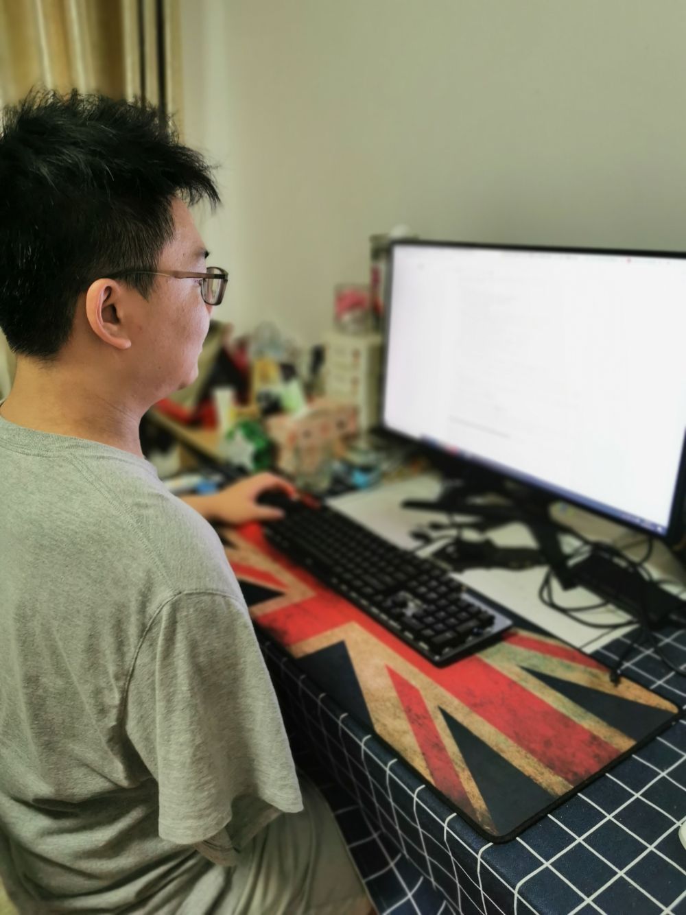 研一时期的黄超在家自习,准备参加网上竞赛。(受访者供图)