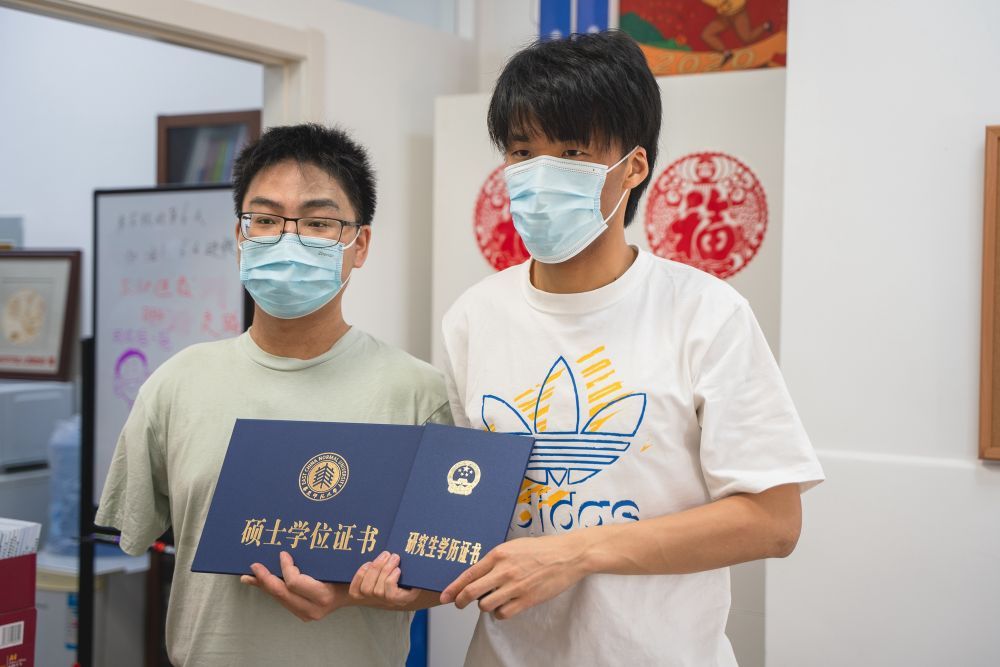 华东师范大学教务处老师为黄超(左一)颁发学历证书和学位证书。(华东师大供图)