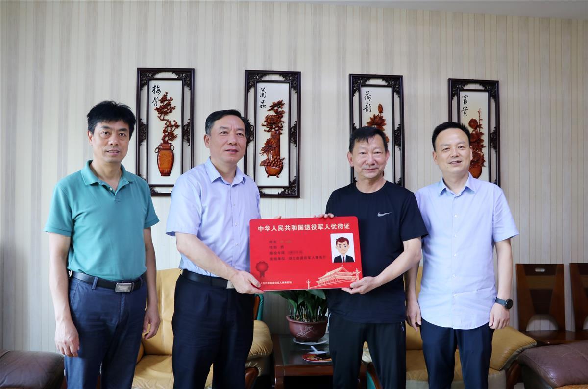 6月28日,湖北枣阳市举行退役军人和其他优抚对象优待证发放仪式,市委副书记、政法委书记张少卿,市政府副市长、公安局长廖新安为四名退役军人代表上门发放优待证。这是退役军人和其他优抚对象建档立卡和制发优待证工作开展以来,枣阳市发放的首批优待证。
