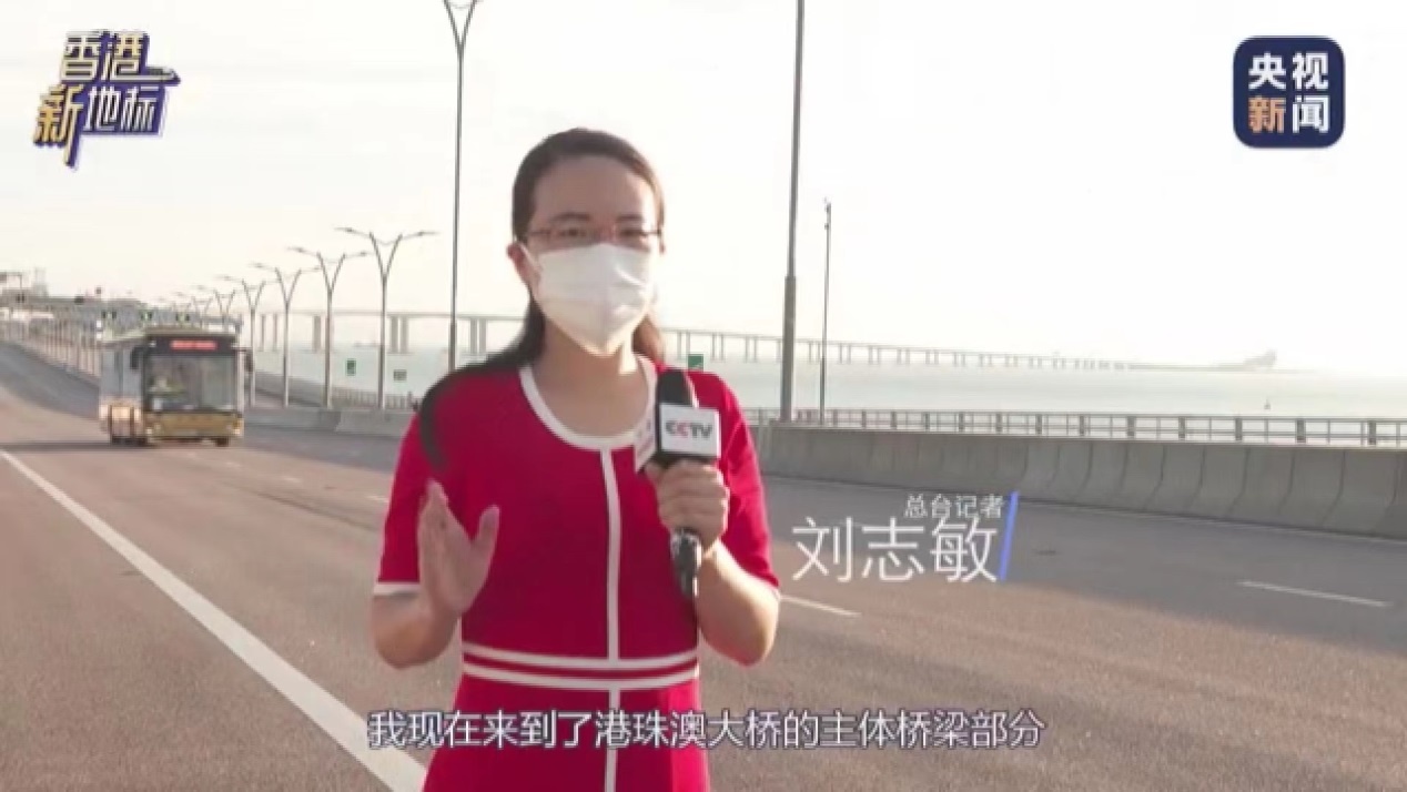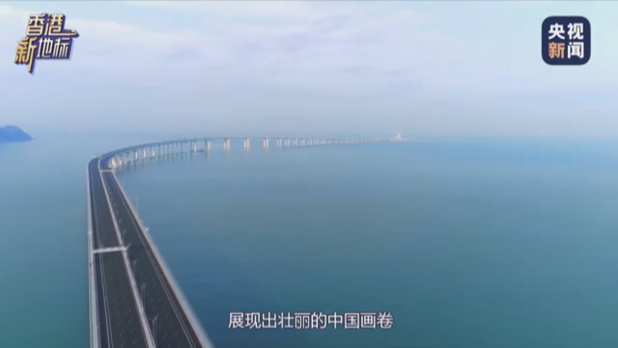 当总台记者站在港珠澳大桥宽阔的桥面上,放眼望去,港珠澳大桥气贯长虹,犹如一条巨龙,腾飞在伶仃洋浩瀚碧波之上,与蓝天白云、苍茫大海交相辉映,水天一色,在风起云涌之间构成了一幅壮丽的“中国画卷”。