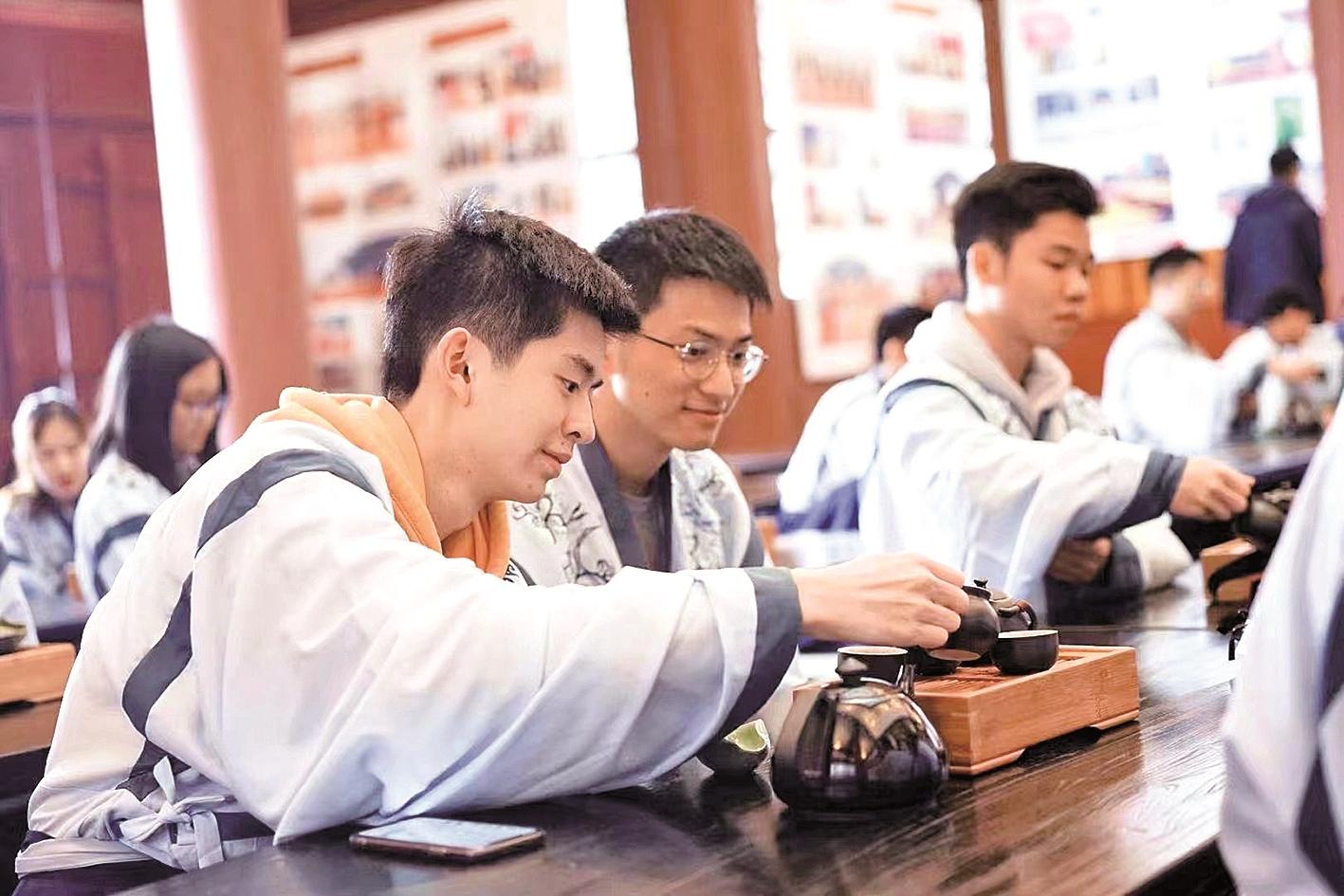 秦阳(前左一)与香港籍学生参加荆楚传统文化体验活动 受访者供图