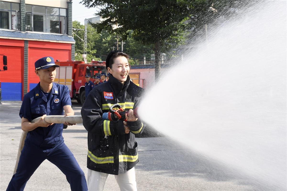 体验是短暂的,收获是丰富的。在消防员生活体验环节,主播们在消防员的带领下,了解了消防车辆和装备器材的用途,体验了穿戴灭火防护服、操作消防机器人、两盘水带连接出水等训练科目,还兴致勃勃地学习了叠“豆腐块”被子。