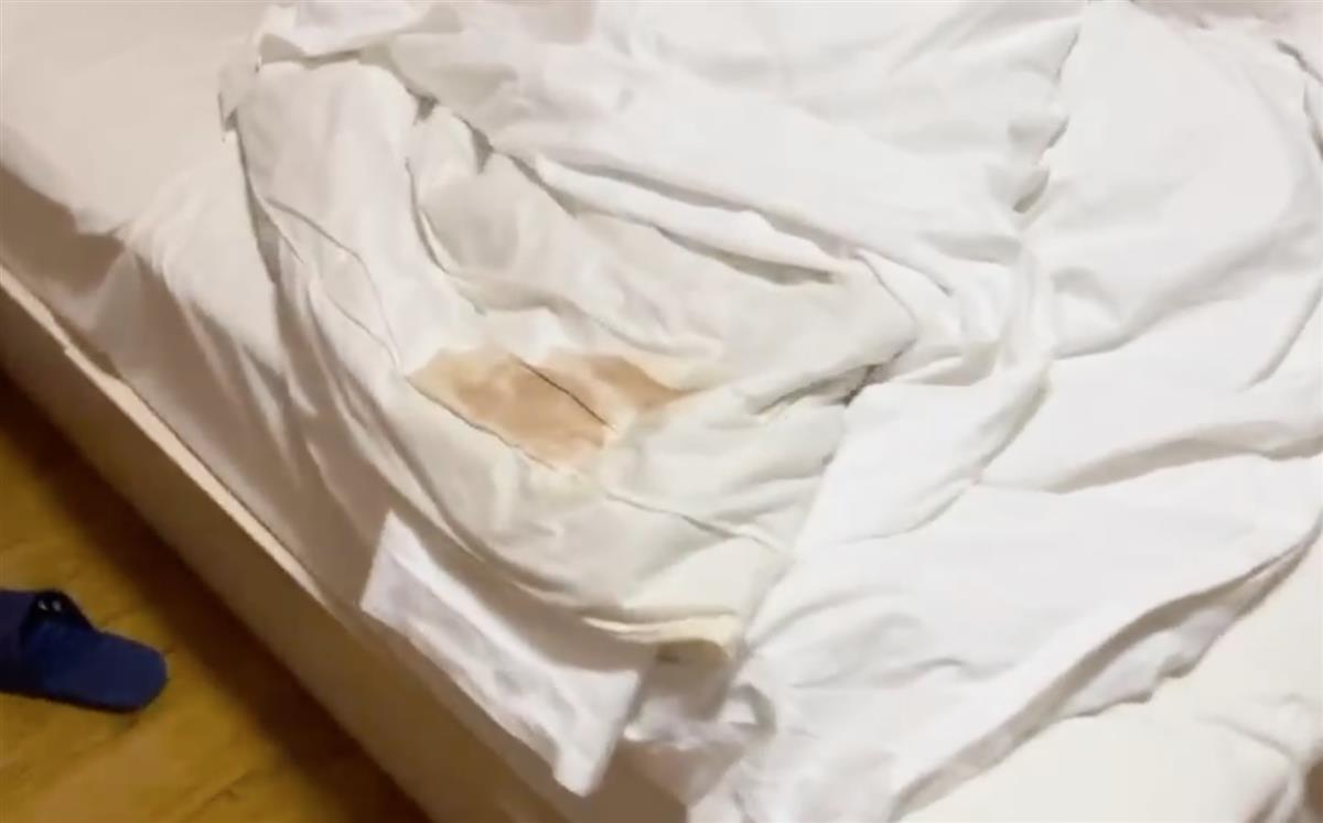 6月30日,一名来自辽宁的网友发布视频称,他在大连入住了7天连锁酒店(瓦房店火车站店),发现床单有大片血迹,很恶心。该网友称他睡了一晚,才发现被子没有洗。