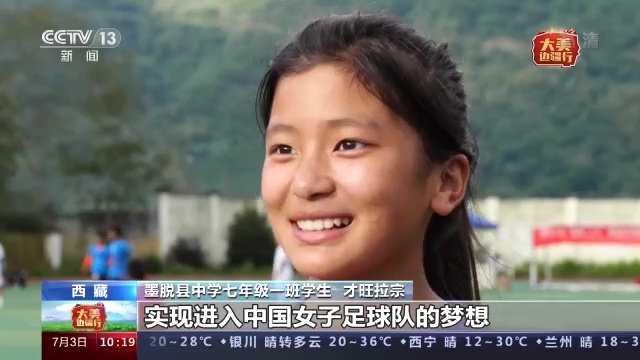 墨脱县中学七年级一班学生 才旺拉宗:在我五年级的时候,我看到我们学校的男同学踢球非常酷,我就特别地喜欢。在这里我遇到了阳光女子足球队,像是给我打开了新的世界一样。不管在学习还有运动上,我都很有动力。我一定会坚持拼搏,实现进入中国女子足球队的梦想。
