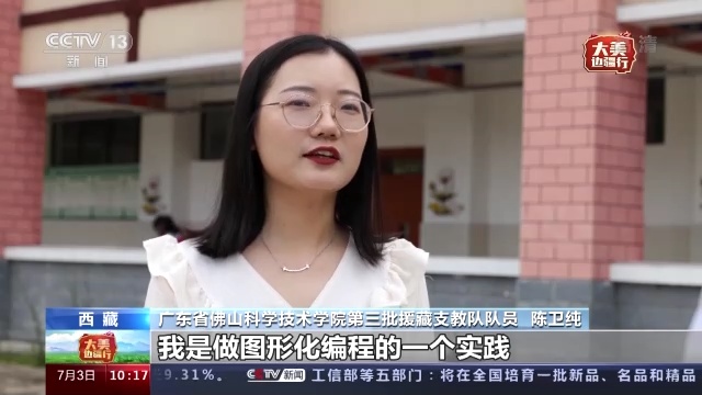 广东省佛山科学技术学院第三批援藏支教队队员 陈卫纯:我是做图形化编程的一个实践,来了之后,其实我还挺意外的,因为这里其实设备都是很齐全,基本上跟内地差不多。