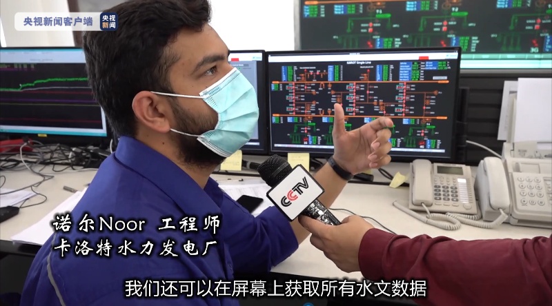厂房里的中控室是卡洛特水电站的“大脑”,里面有一套智能监控系统就像是神经中枢,上面集成了电站运营的所有相关数据。6月正值巴基斯坦季风雨季,中巴联合培训的工程师诺尔(Noor)向总台记者演示了系统如何智能化监测水情和自动开闸泄洪。