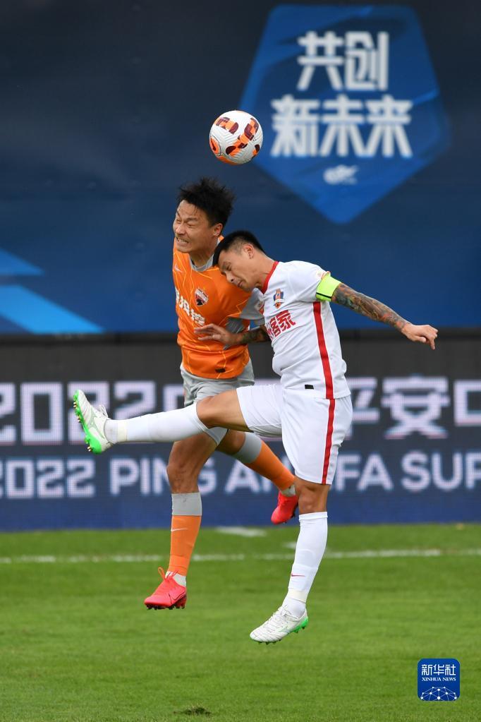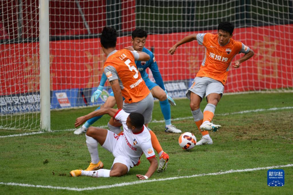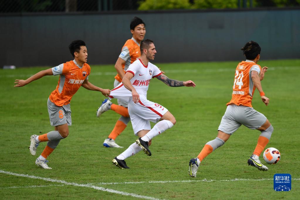 7月3日,深圳队球员张远(右)在比赛中解围。新华社记者 陈振海 摄