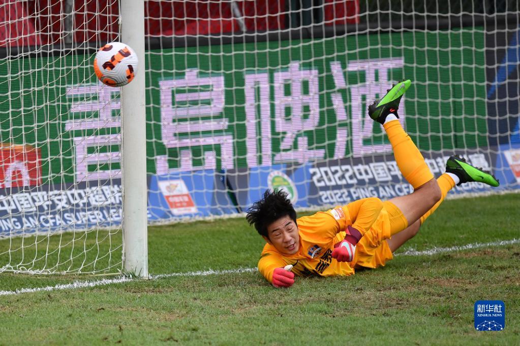7月3日,梅州客家队守门员侯宇在比赛中扑救。新华社记者 陈振海 摄