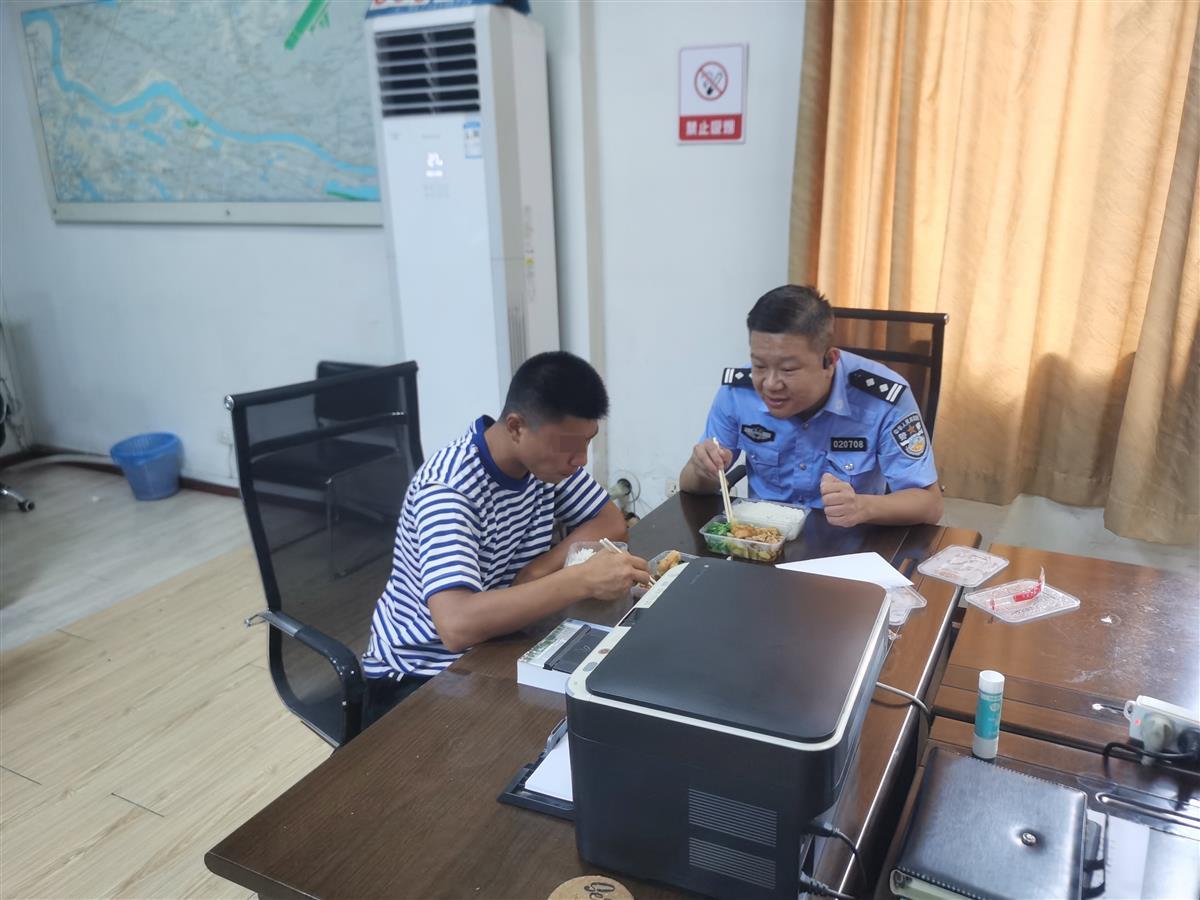 2日下午3时许,杨家河所民警严捷、辅警李辉巡逻至硚口区汉江边古田桥下,遇江滩保安求助:江滩内发现一名流浪男孩。因天气炎热,孩子神情呆滞,严捷担心男孩中暑,连忙扶其进警务室纳凉,并反复询问家庭情况,男孩一直抗拒,默不作声。考虑到男孩在外流浪,可能没有正常饮食,两人遂将其带回所内就餐。