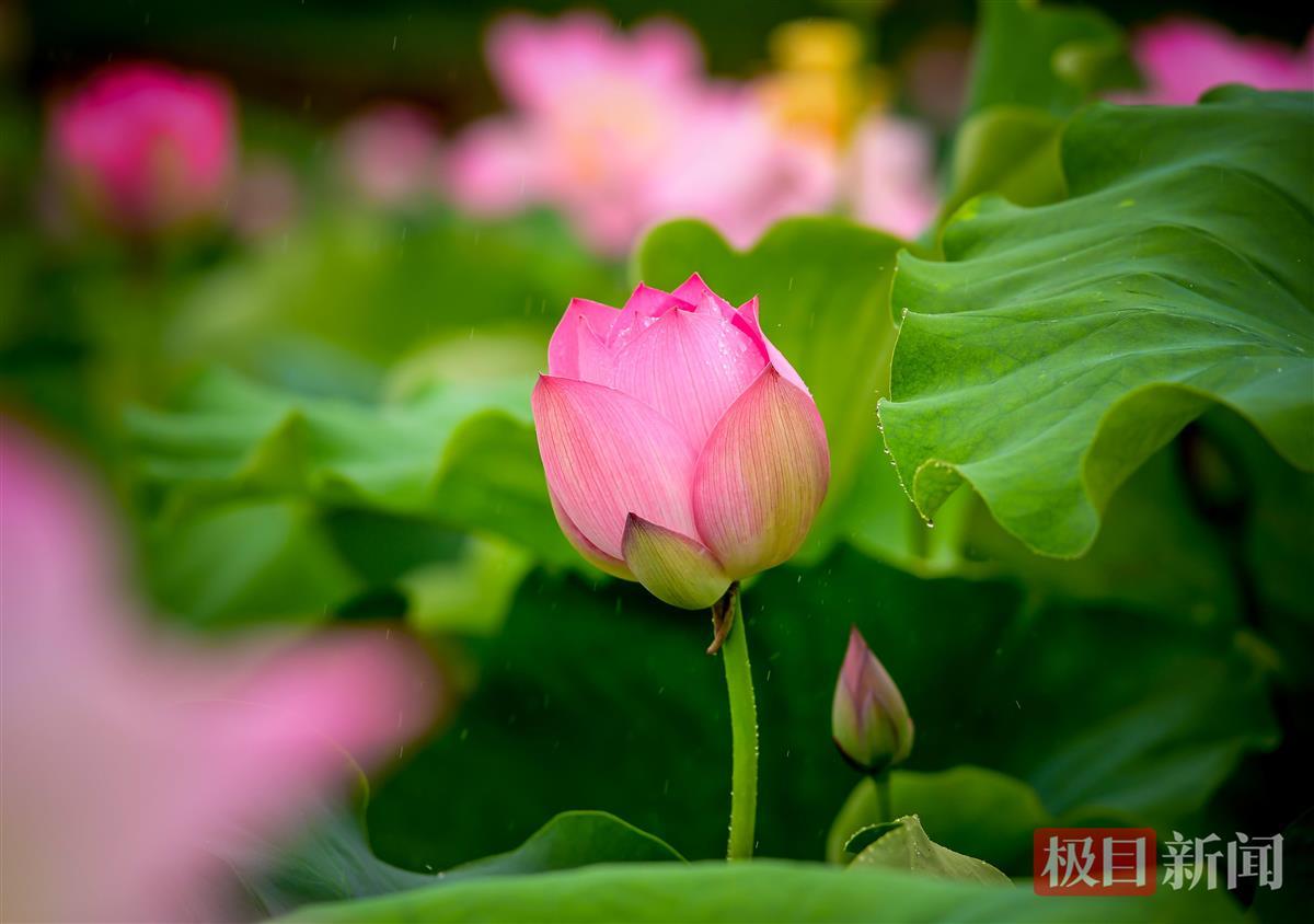 “啊,荷花,百花丛中最鲜艳。啊,荷花,众香国里最壮观……”向先生面向一池荷花仍不住高歌起来。7月5日上午,武汉市江夏区第十届赏荷采莲节在“荷韵水乡”法泗街大路村举办。尽管天公不作美,下起了绵绵夏雨,但挡不住游客的热情,有的约着好友出行,有的穿着汉服前来打卡,相约法泗万亩荷塘,体验荷花之美。