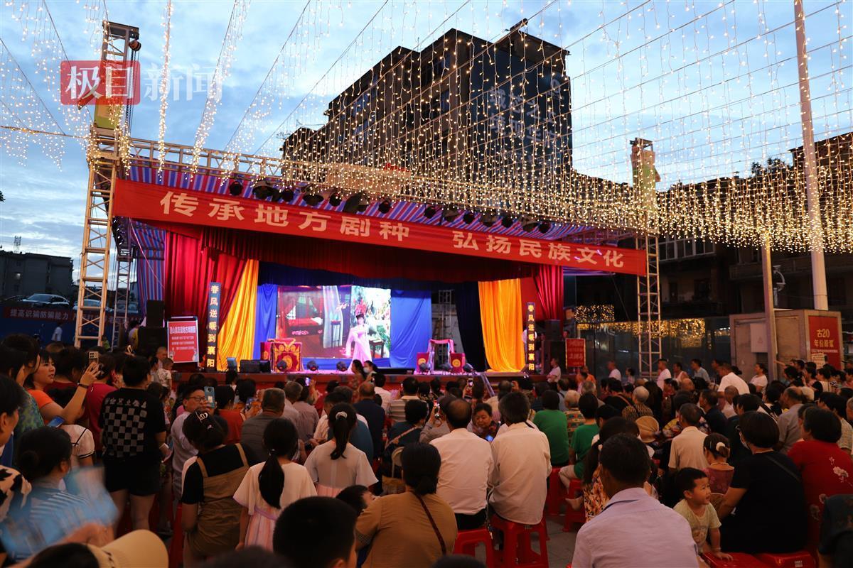 7月3日晚,湖北通山县万城广场灯火辉煌,人头攒动。演员精湛的演技、精美的扮相和纯熟的唱腔,吸引众多市民驻足观看。