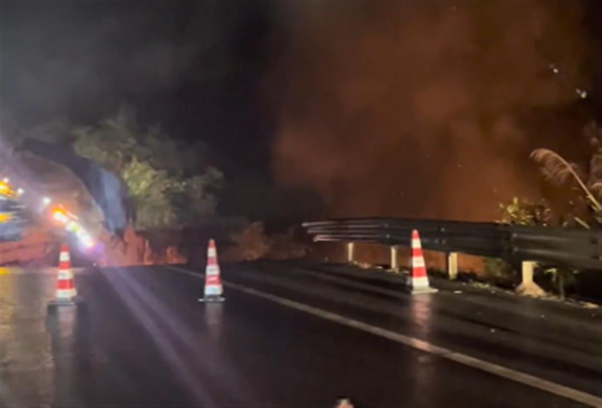 因为堵车,王先生就回到车上休息,直至凌晨5点20分左右,有交警来敲车窗提示可以离开。王先生往前开发现,事发地附近中间护栏被挖开,滞留车辆开到对向车道通过塌方区域。