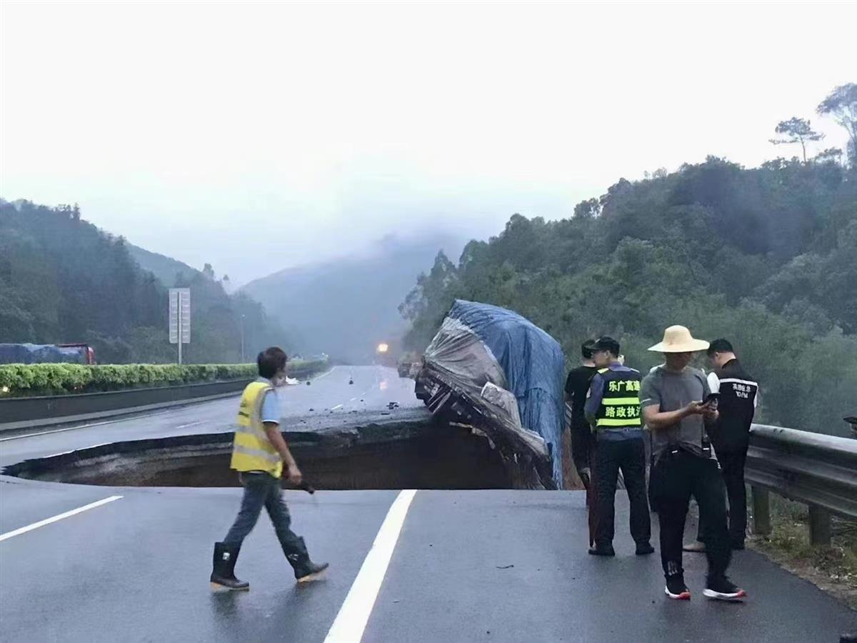 7月5日凌晨0时许,乐广高速英德连江口路段发生路面塌陷。7日下午4时30分许,塌陷现场泥土中挖出疑似货车残骸。有事故当时的目击者称,当时看到塌陷的坑下方有车掉入并起火。