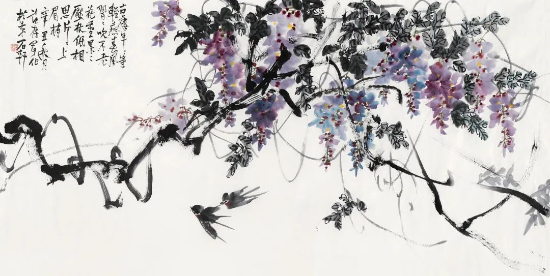 范存刚 紫藤 123cm×246cm 纸本设色 2020年