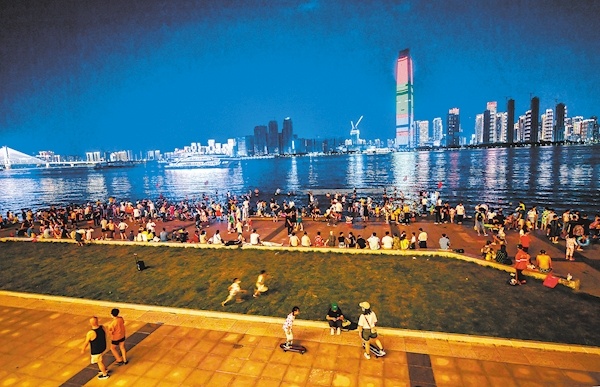 夏夜来临,汉口江滩成了市民纳凉散步、亲水嬉戏的好地方。江滩的凉风温柔舒爽,吹走了夏日的炙热,令人身心放松,心旷神怡。