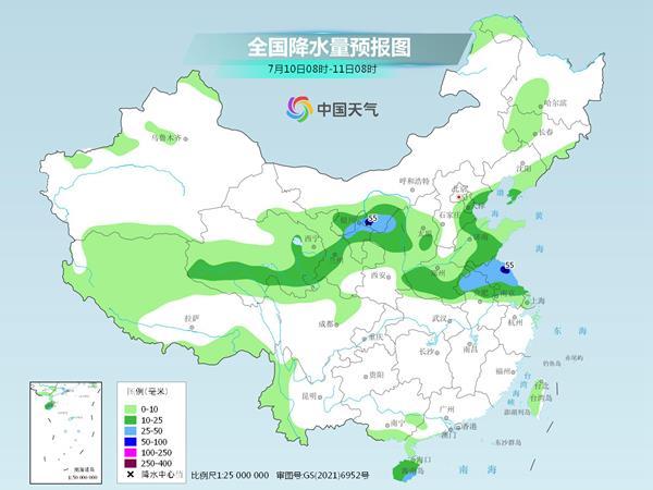 中央气象台预计,今天青海南部和东部、甘肃南部、宁夏、内蒙古河套地区、陕西北部、华北东部、黄淮南部和西部、江淮、海南岛等地的部分地区有中到大雨,局地有暴雨(50~55毫米)。